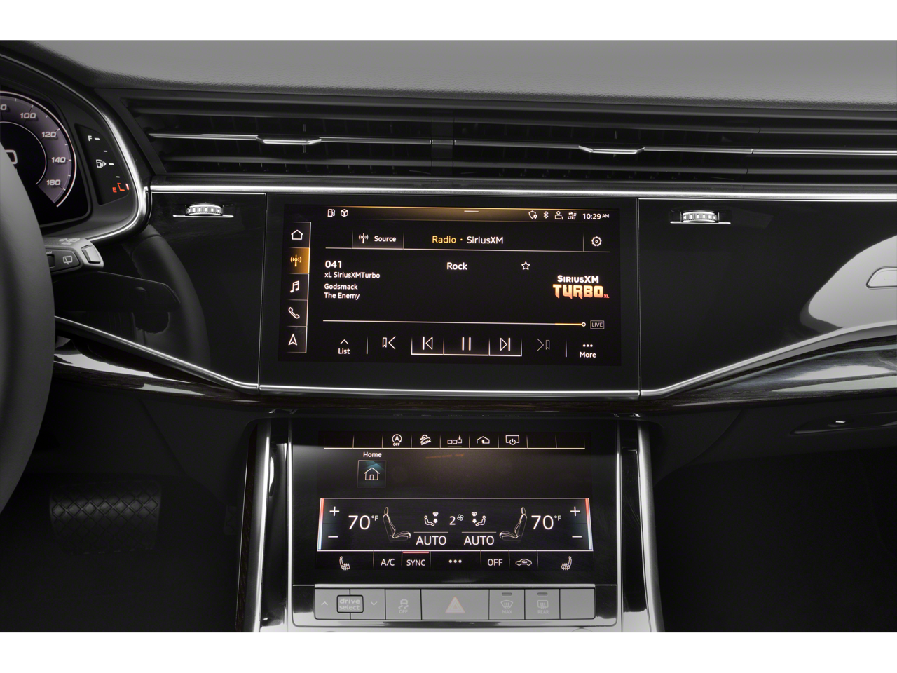 - Radio: Audi Sound System -inc: Audi smartphone interface (wired Android Auto and wireless Apple CarPlay), MMI navigation plus w/MMI touch response - 10.1" upper, 8.6" lower screen, preparation for mobile phone (Bluetooth) and SIRIUS Satellite Radio (w/3-month complimentary subscription)
